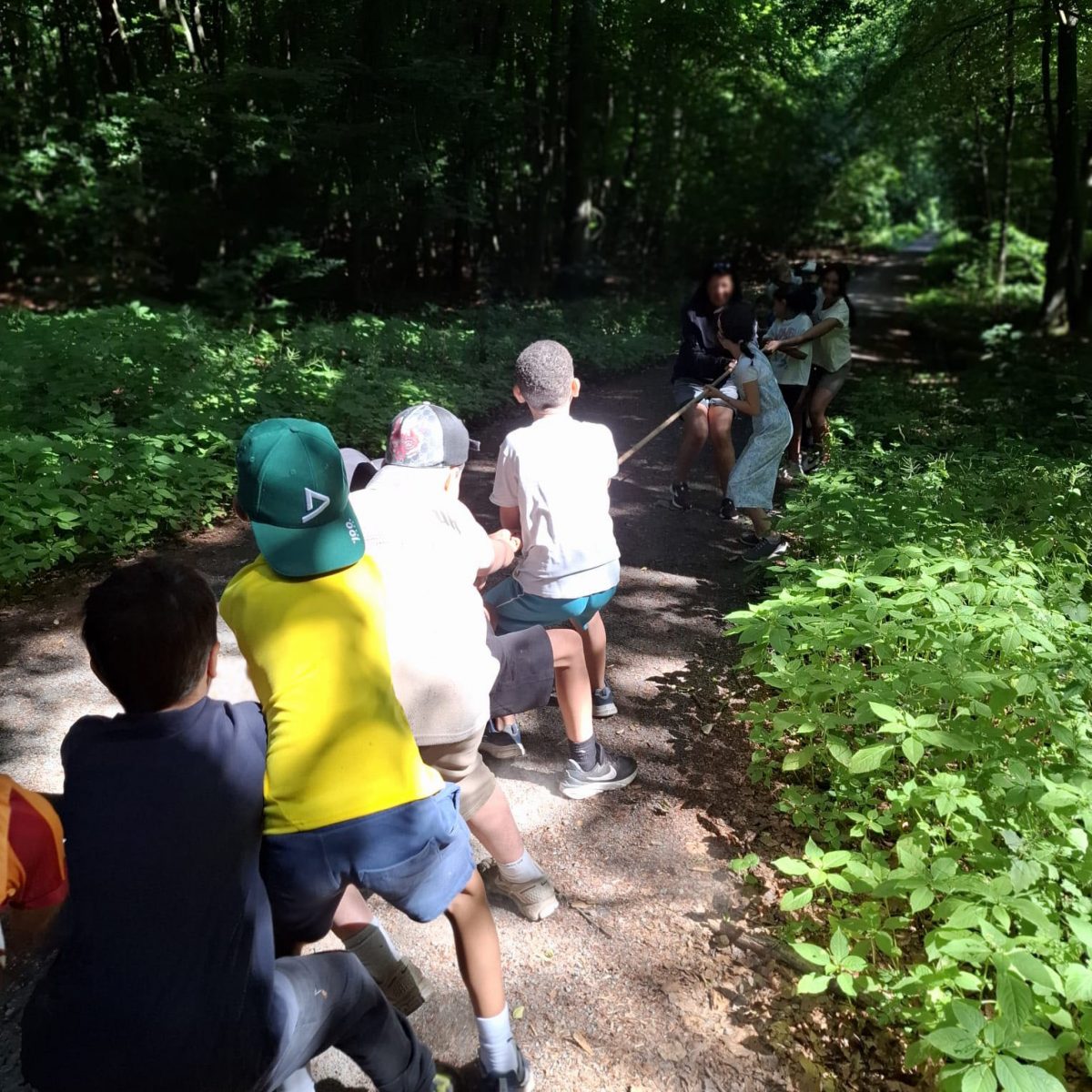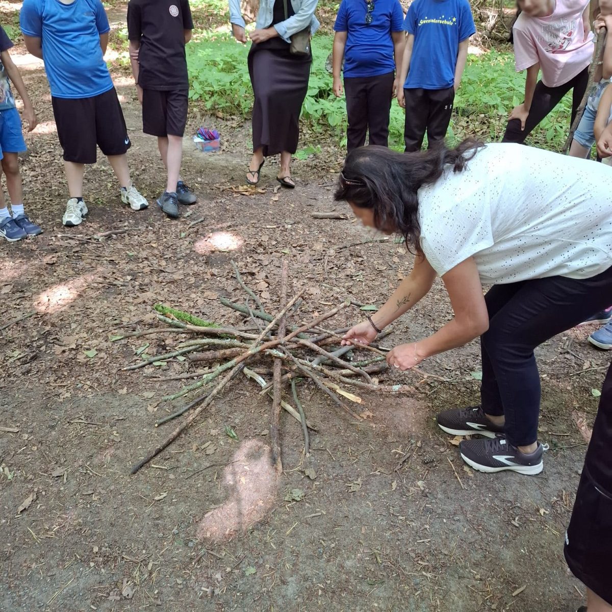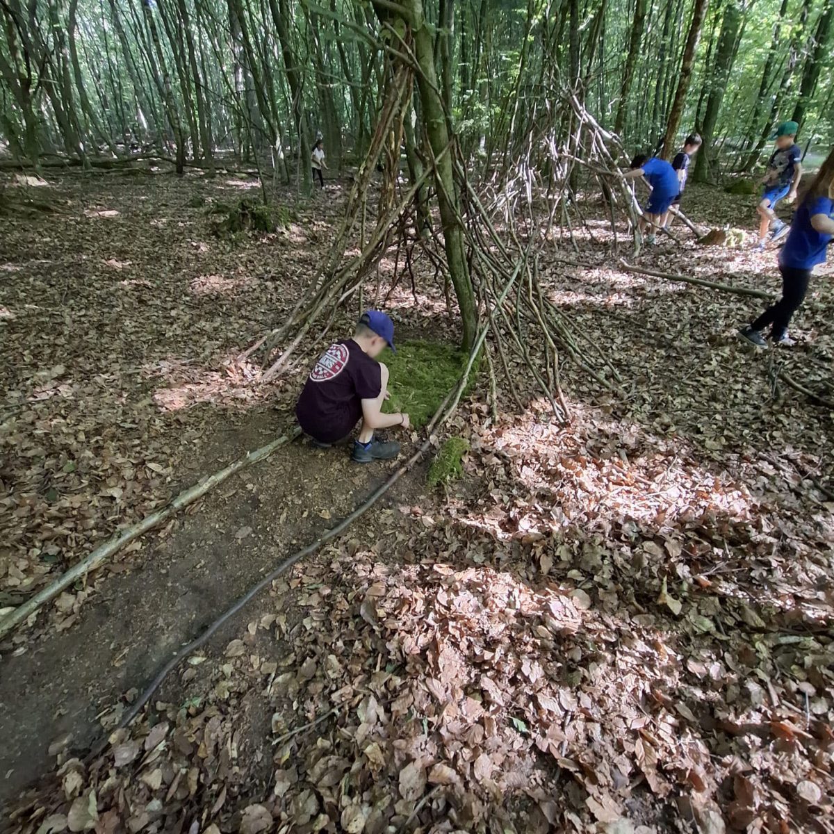 Im Anschluss suchten sich die Kinder im Wald kleine Plätze rund um das Tor, sammelten Naturmaterialien und begannen mit dem Bau eigener Wichtelhäuser. Dabei entstanden liebevoll gestaltete Miniaturwelten – manche mit Gärten, andere mit Möbeln und kleinen Bewohnern. Eine Tauzieh-Challenge rundete den Tag ab und betonte spielerisch den Wert von Zusammenhalt.