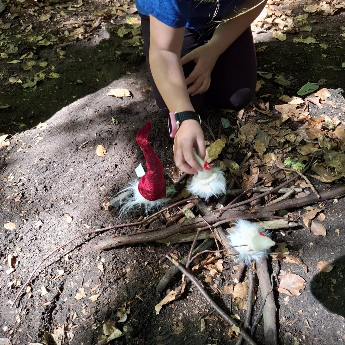 Zum Auftakt des ersten Workshoptags wurden die Kinder am Waldrand von einer geheimnisvollen Wichtelbotschaft begrüßt: Die Bewohner des Elfenwaldes hatten sie um Hilfe gebeten – ein schwerer Sturm hatte ihre Siedlung zerstört. Nun lag es an den Kindern, ein neues Zuhause für die kleinen Wesen zu errichten.
