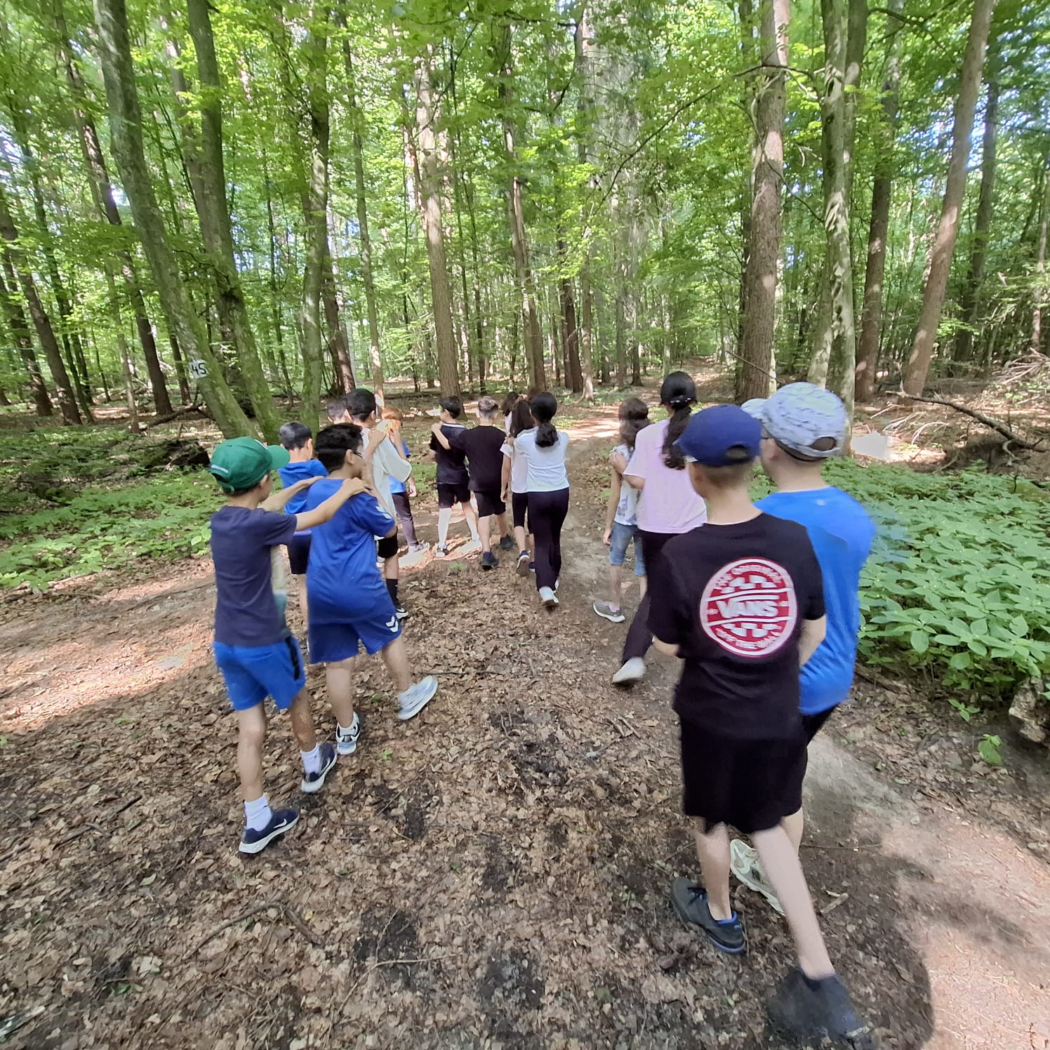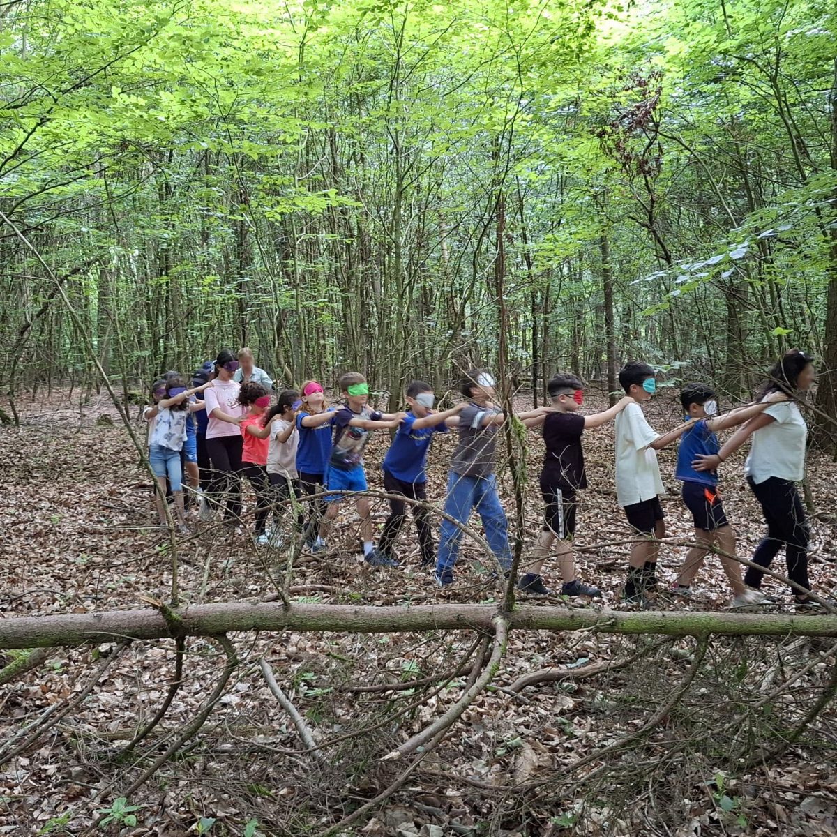 Beim interaktiven Wald-Bingo wurde die Umgebung genau unter die Lupe genommen: Wer findet zuerst einen Zapfen? Etwas Weiches? Etwas, das du riechen kannst? Die Kinder entdeckten mit offenen Sinnen ihre Umwelt – und hatten dabei sichtlich Spaß.